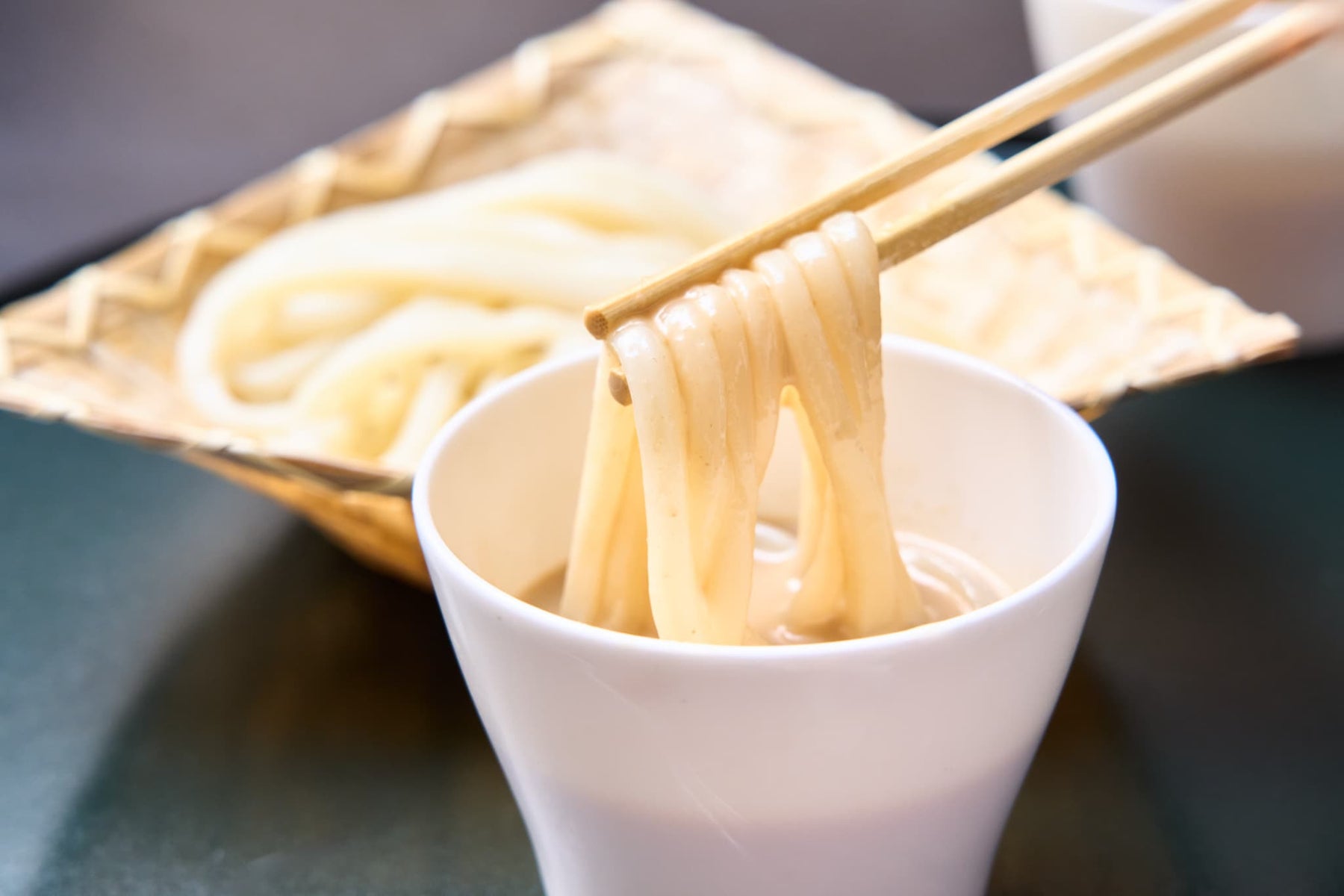 【ゴマつゆ】 香ばしく風味豊かな金ごまを贅沢に使用した、田丸屋特製のゴマつゆです。ゴマの濃厚な香りとうま味が凝縮された濃厚な味わいで、つるりとしたうどんの美味しさを更に引き立てます。店舗で提供しているものと同じこだわりの味を是非お楽しみください。